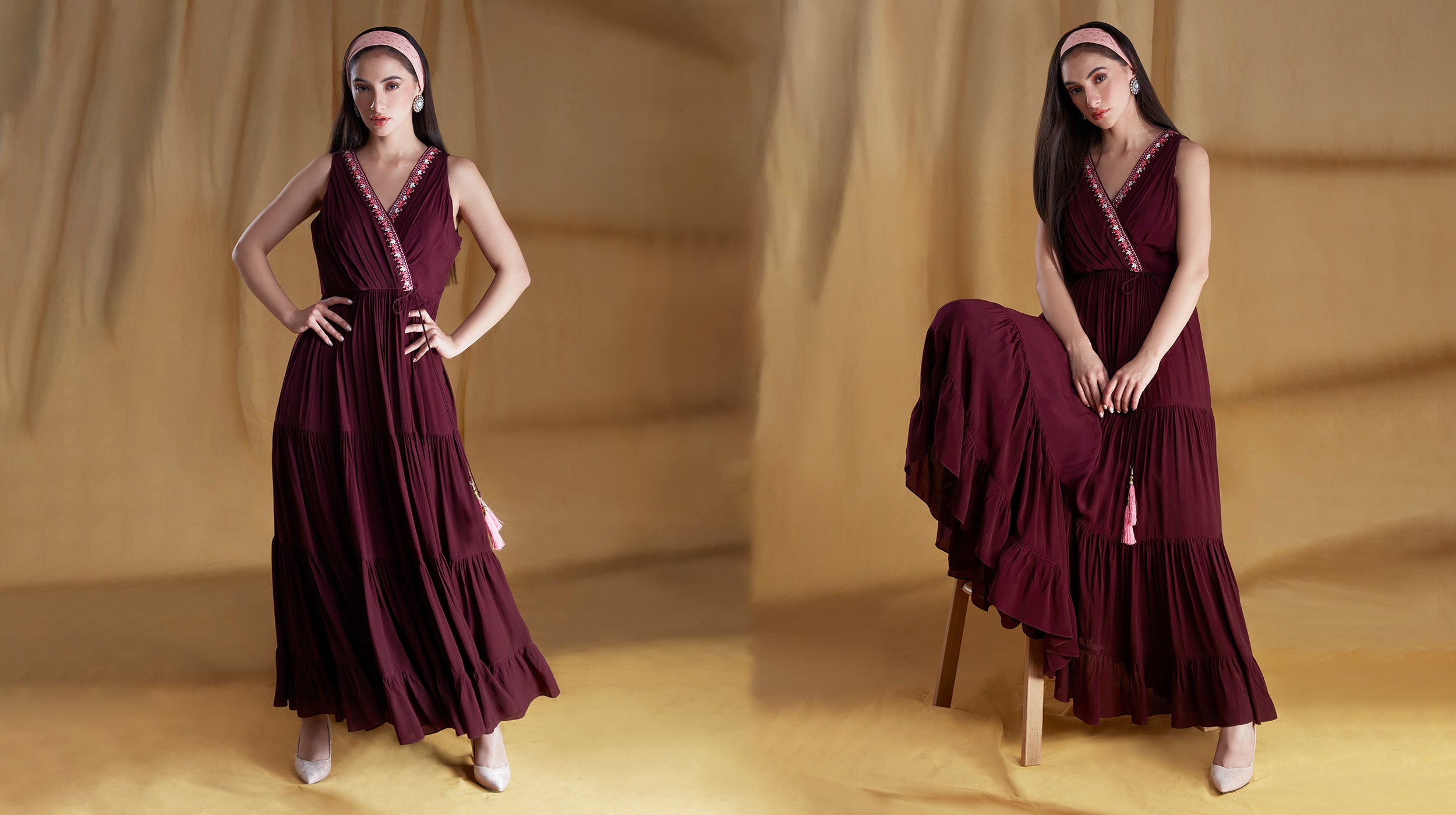Magenta and Hot Pink Custom Floral Printed, Embroidered Dress