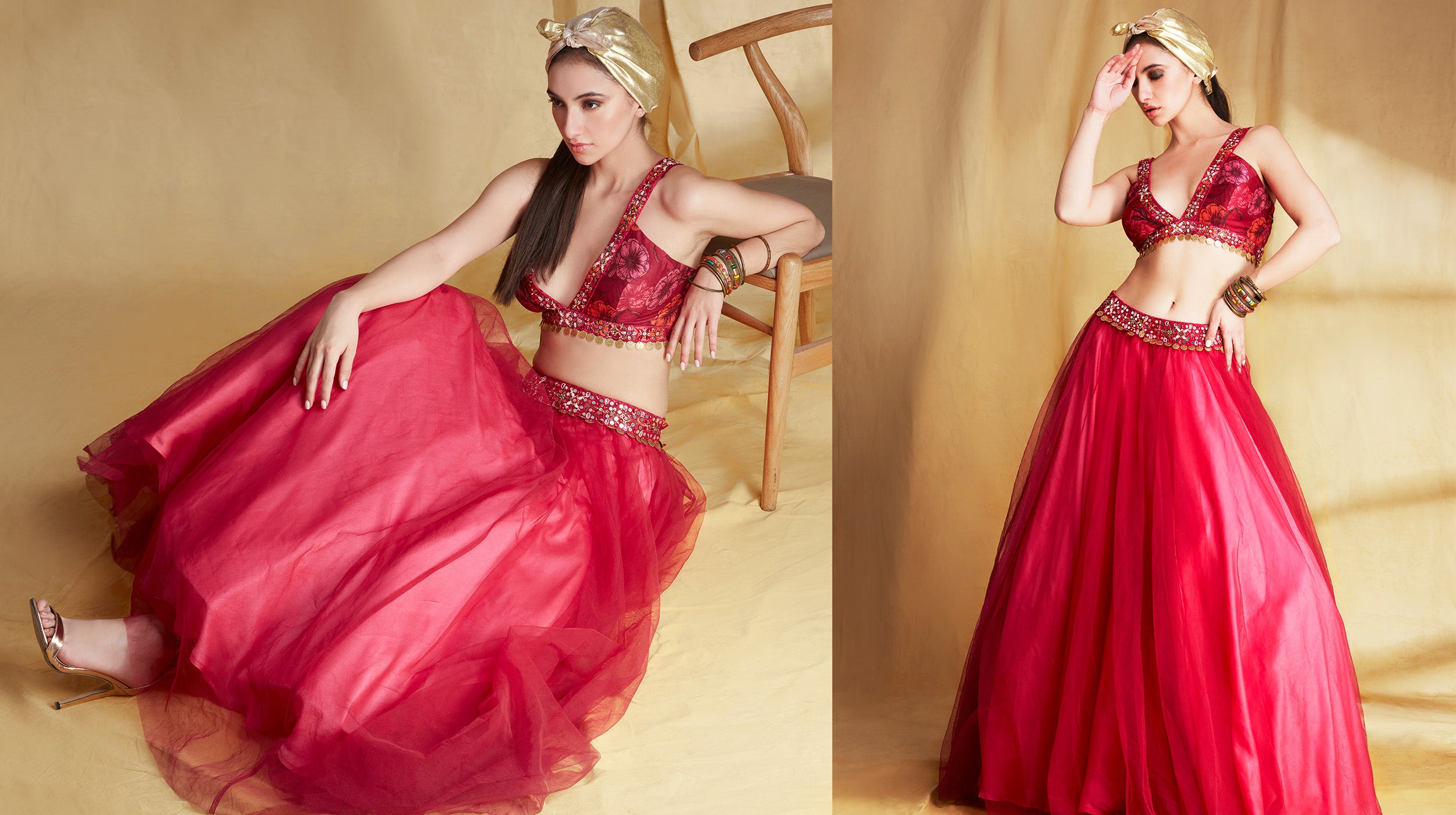 Hot Pink and Magenta, Embroidered Lehenga and Blouse
